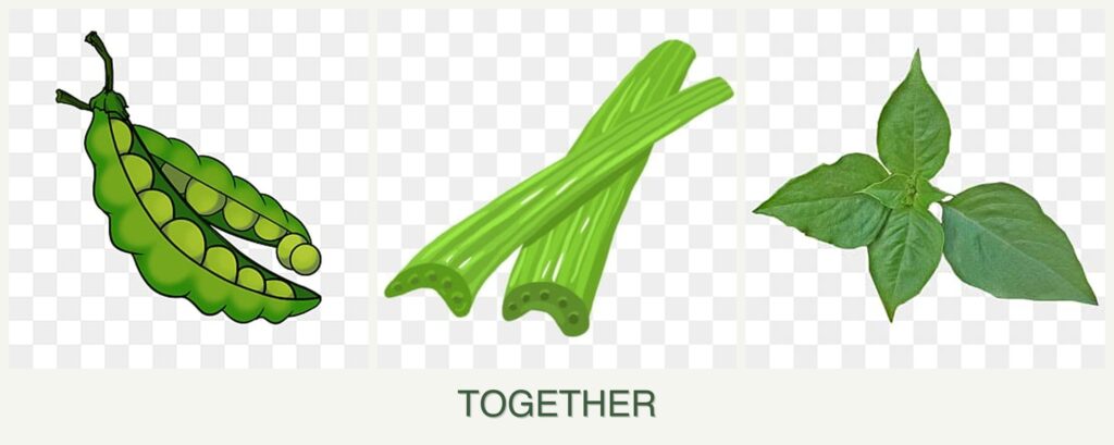 - Soil Health Benefits: Peas fix nitrogen, enriching the soil for celery and basil.