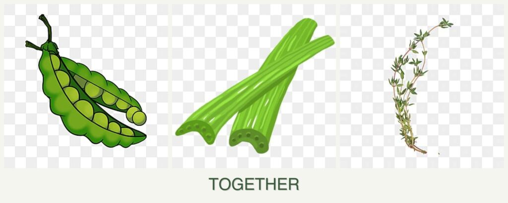 - Pest Control: Thyme’s aromatic properties can help repel certain pests that might otherwise target peas and celery.
