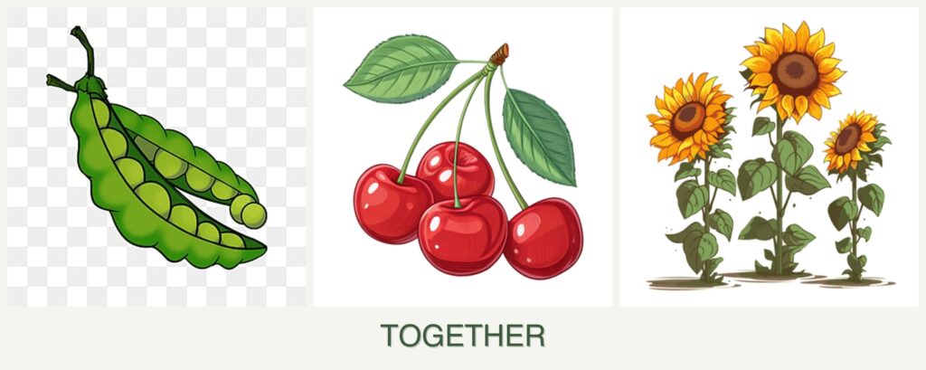 While peas, cherries, and sunflowers aren’t ideal companions, each offers unique benefits when paired with other plants: