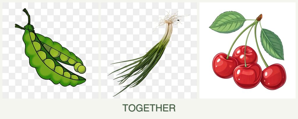 - Improved Flavor and Growth: Peas improve soil nitrogen levels, benefiting both chives and cherries.