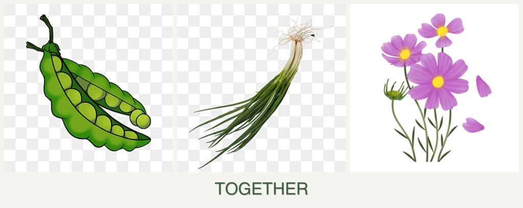 Pest Control: Chives help repel aphids and other pests that might plague peas and cosmos.