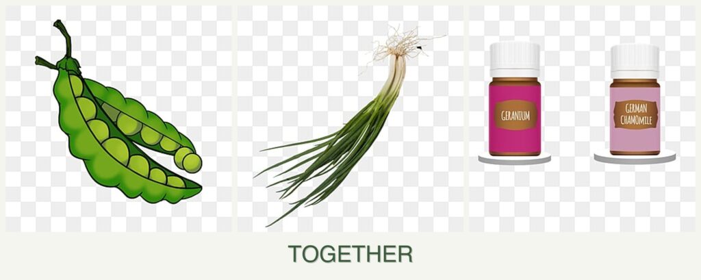 - Pest Control: Chives can repel aphids and other pests that might affect peas. Geraniums attract pollinators, which can benefit peas.