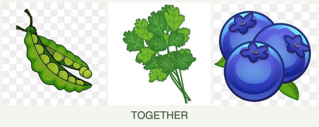 Can peas, cilantro, and blueberries be planted together? The answer is NO. While peas and cilantro can be good companions, blueberries have different needs that make them incompatible with the other two.