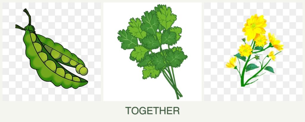 - Improved Growth: Peas fix nitrogen in the soil, promoting healthy growth for cilantro and calendula.