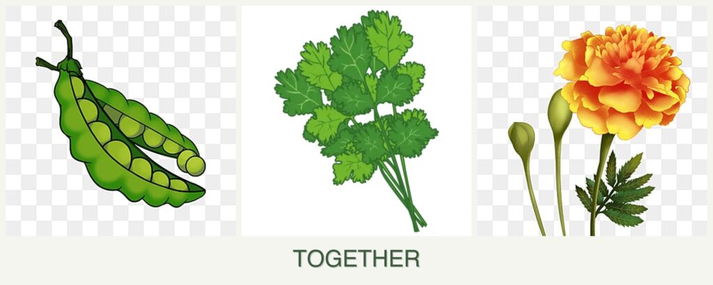 - Pest Control: Cilantro and marigolds help keep pests away from peas.
