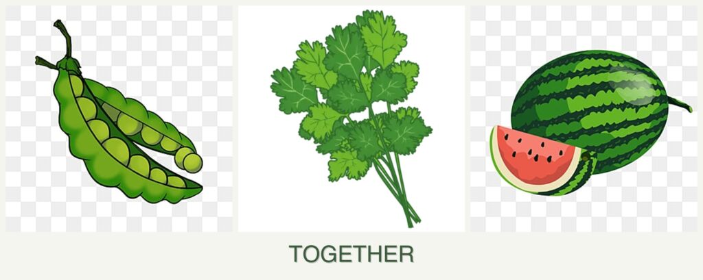 - Optimal Spacing: Keep peas and cilantro closer together and provide ample space for melon vines.
