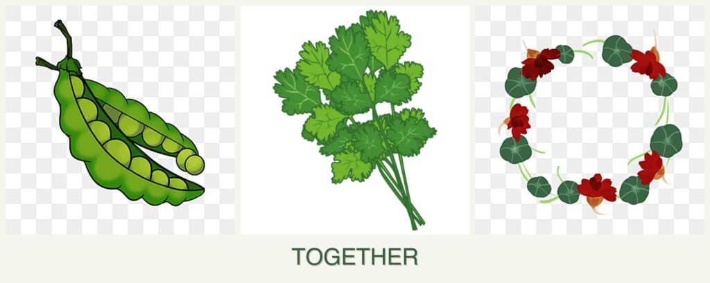 Planting peas, cilantro, and nasturtiums together offers several advantages:
