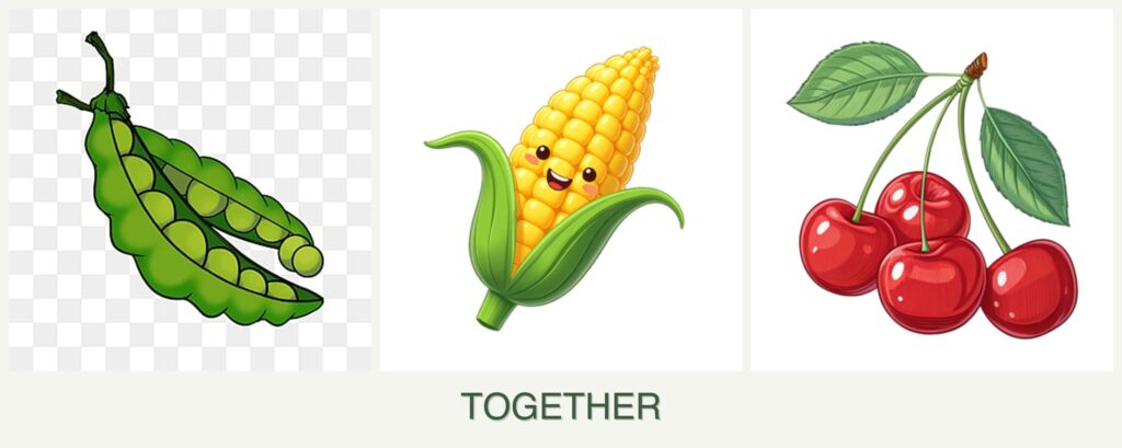 - Cherries: Require more space, different soil pH, and are perennial, unlike the annual nature of peas and corn.