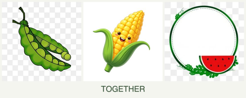 - Nutrient Needs: Peas fix nitrogen in the soil, benefiting the nutrient-hungry corn and watermelons.