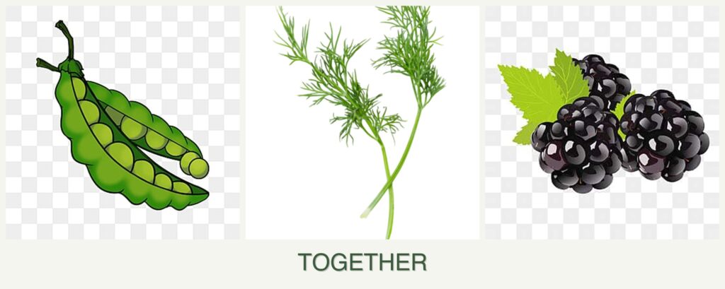 - Nutrient Needs: Peas improve soil nitrogen levels, which can benefit dill. Blackberries, however, may compete for nutrients if not spaced properly.