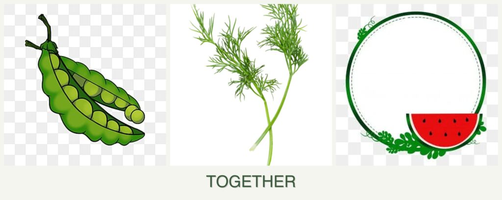 - Nutrient Needs: Peas fix nitrogen in the soil, benefiting surrounding plants like dill and watermelons. However, ensure that watermelons, which are heavy feeders, get enough nutrients.