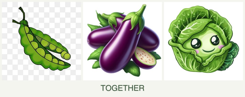 - Timing: Plant peas and cabbages in early spring or fall, and eggplants in late spring or early summer.