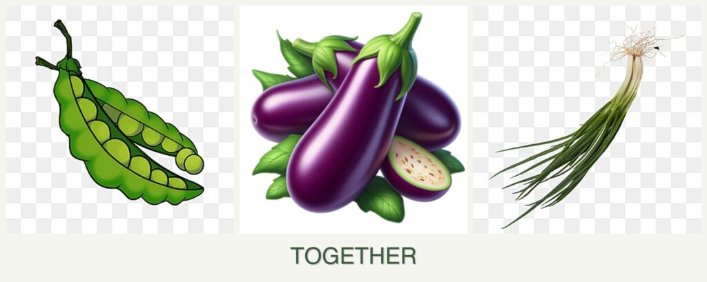 The key to successful companion planting with these three lies in timing and spacing. Peas can prepare the soil for eggplants by enriching it with nitrogen, while chives can deter pests from both peas and eggplants.