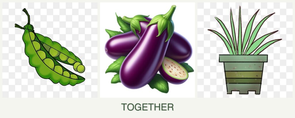 - Resource Competition: Eggplants require high nutrients, which may deplete soil for peas and lemongrass.