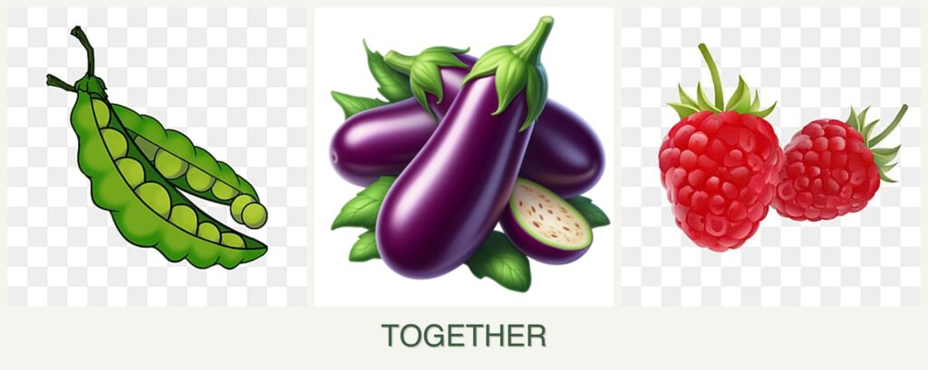 - Nutrient Needs: Peas enrich soil with nitrogen, but eggplants and raspberries have different nutrient demands.