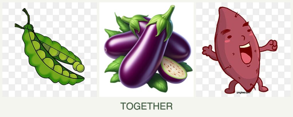 Can you plant peas, eggplant and sweet potatoes together?