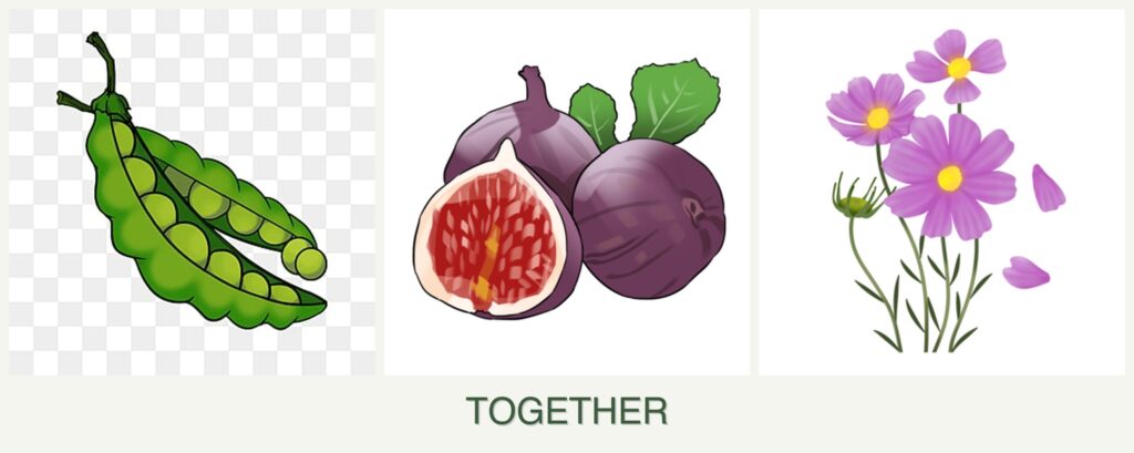 - Improved Growth: Peas fix nitrogen, enriching the soil for figs and cosmos.