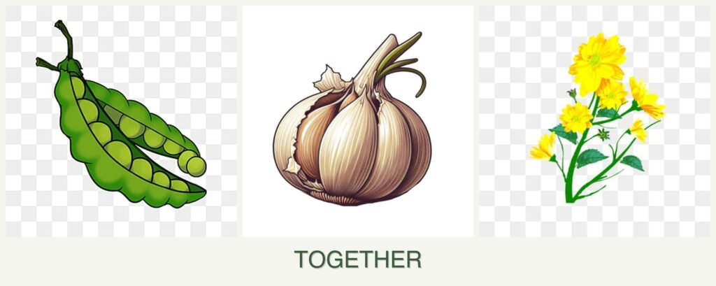 - Nutrient Needs: Peas fix nitrogen in the soil, benefiting garlic, which is a nitrogen-loving plant.
