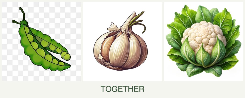 Planting peas, garlic, and cauliflower together can offer several advantages: