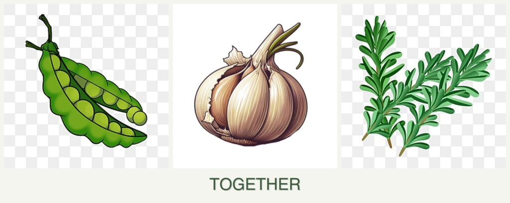 - Nutrient Needs: Peas fix nitrogen in the soil, which can benefit garlic and rosemary.