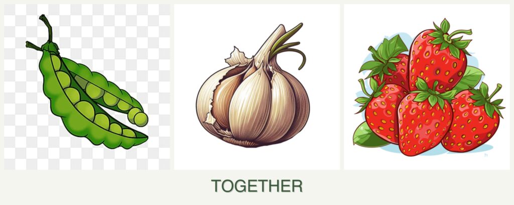 - Pest Control: Garlic repels pests that might otherwise harm strawberries and peas.