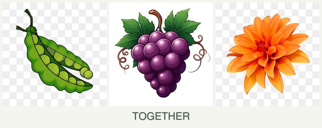 - When is the best time to plant these together? Plant peas in early spring, grapes in late winter, and dahlias after the last frost to align with their growth cycles.