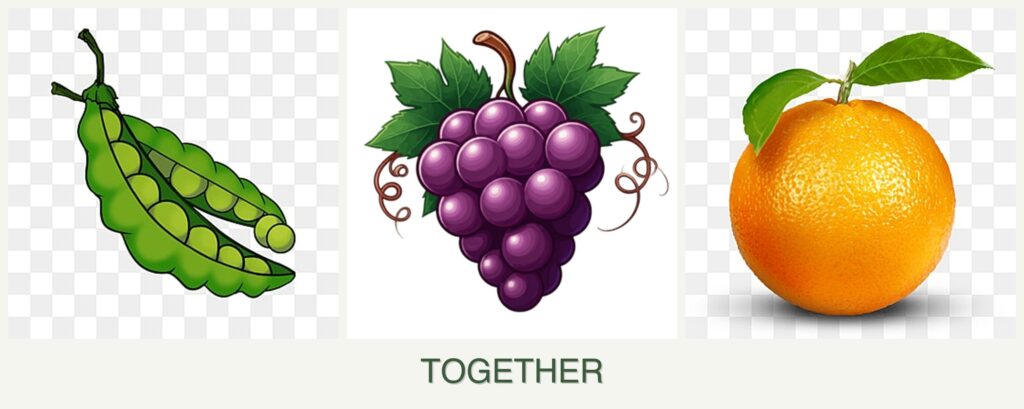 While planting peas, grapes, and oranges together is not ideal, individual pairings can offer benefits: