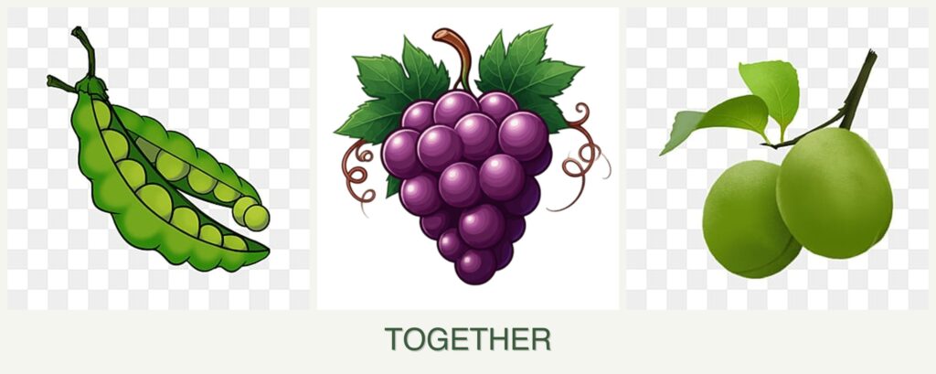 - Soil Health Benefits: The nitrogen-fixing ability of peas enhances soil fertility, indirectly supporting grapes and plums.
