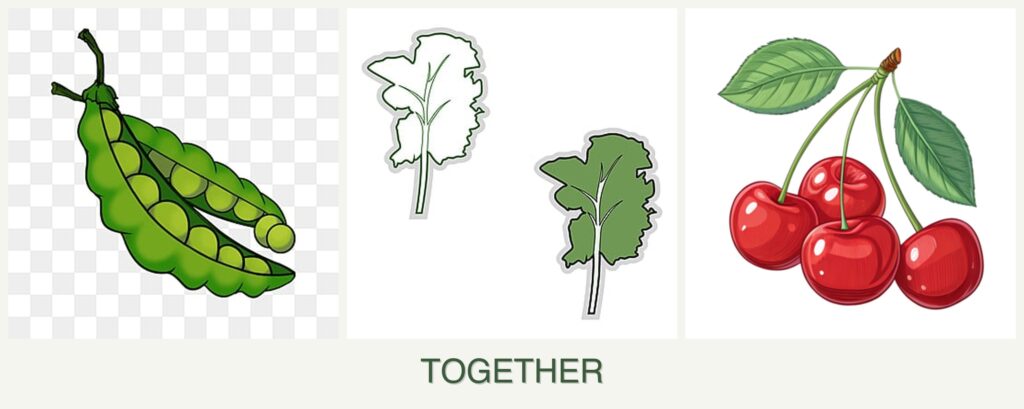 Nutrient Needs and Spacing: Peas are nitrogen-fixers, which can benefit kale by enhancing soil fertility. Cherries, being a tree, require more space and nutrients, potentially overshadowing smaller plants.