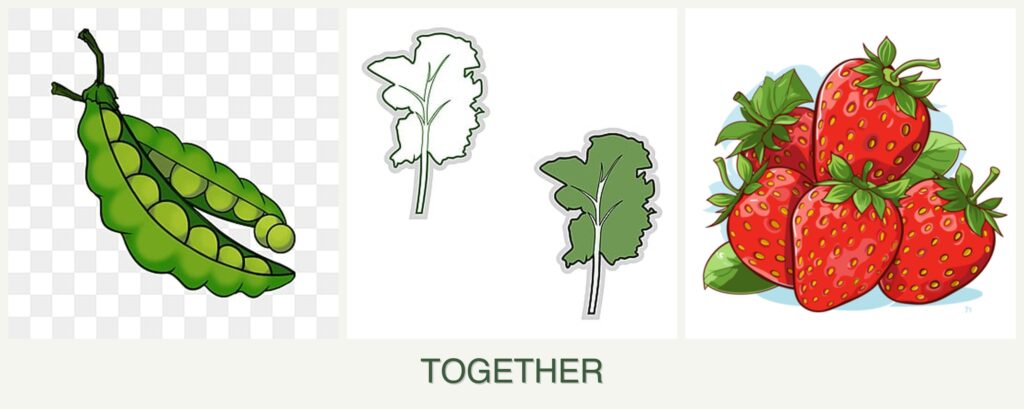 - Nutrient Needs: Peas improve soil nitrogen, benefiting kale and strawberries.
