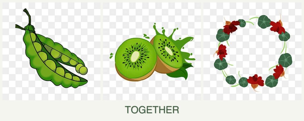 - Improved Growth: Peas enrich the soil with nitrogen, supporting the growth of kiwi and nasturtiums.