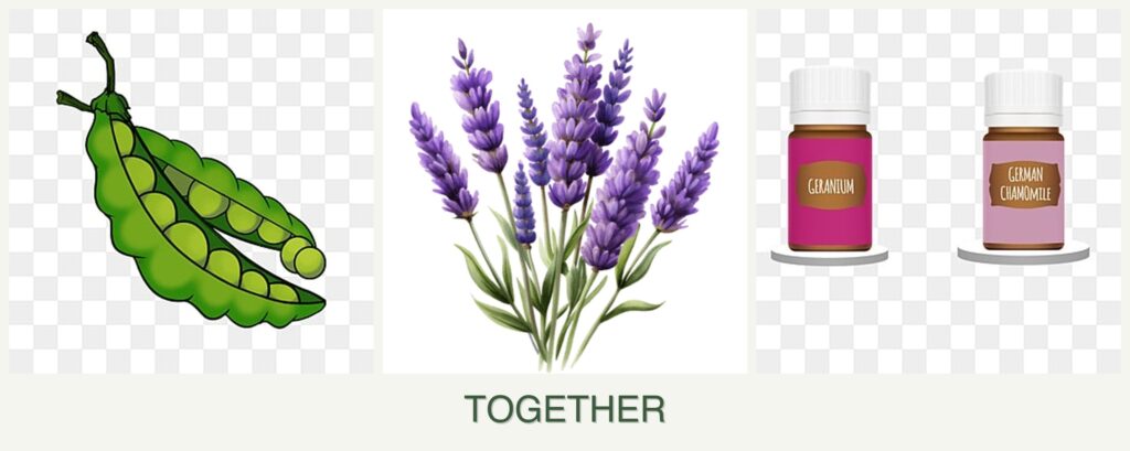 - Pest Repellent Properties: Lavender and geraniums repel aphids and other common pests, protecting peas.