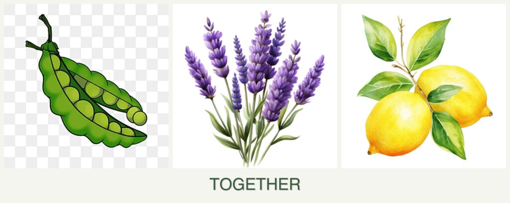 While peas, lavender, and lemons are not ideal companions, each has its benefits when paired with compatible plants: