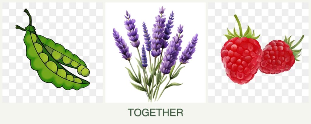 - Nutrient Needs: Peas fix nitrogen in the soil, which can benefit raspberries, but lavender’s low nutrient needs mean it won’t benefit as much.