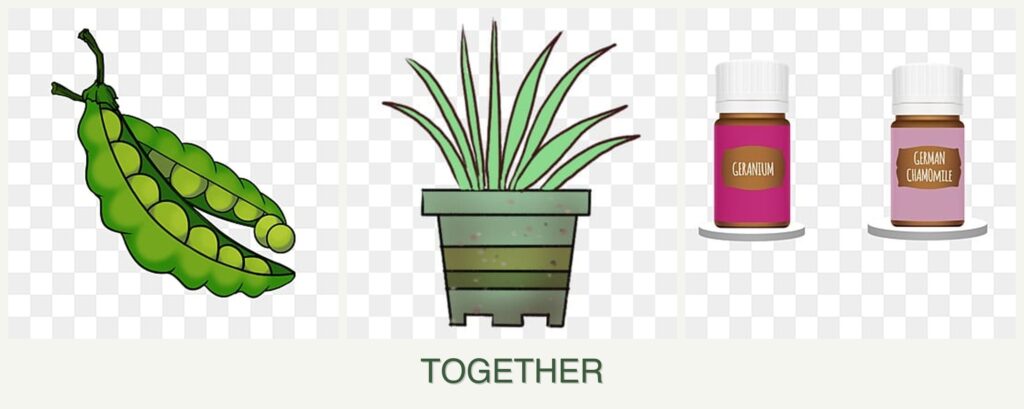 - Improved Growth: Peas enrich the soil with nitrogen, benefiting the growth of lemongrass and geraniums.