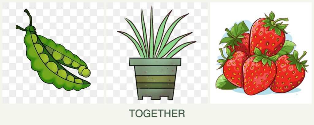 Improved Growth: Peas enrich the soil with nitrogen, aiding the growth of strawberries and lemongrass.