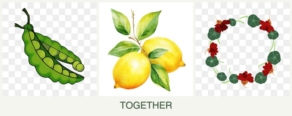 - Pest Control: Nasturtiums repel aphids and other pests, protecting peas and lemons.