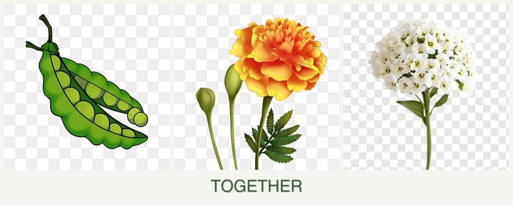 Planting peas, marigolds, and alyssum together offers numerous benefits: