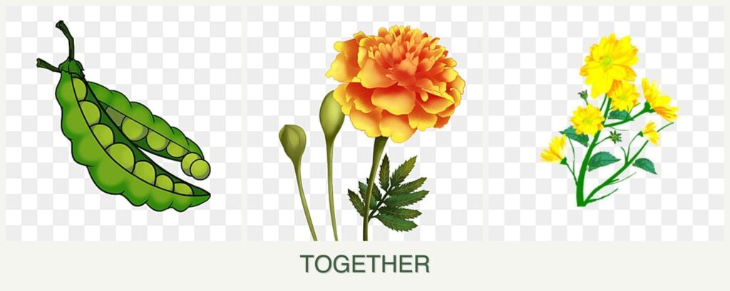- Improved Growth: The nitrogen-fixing ability of peas enhances soil fertility, promoting the growth of marigolds and calendula.