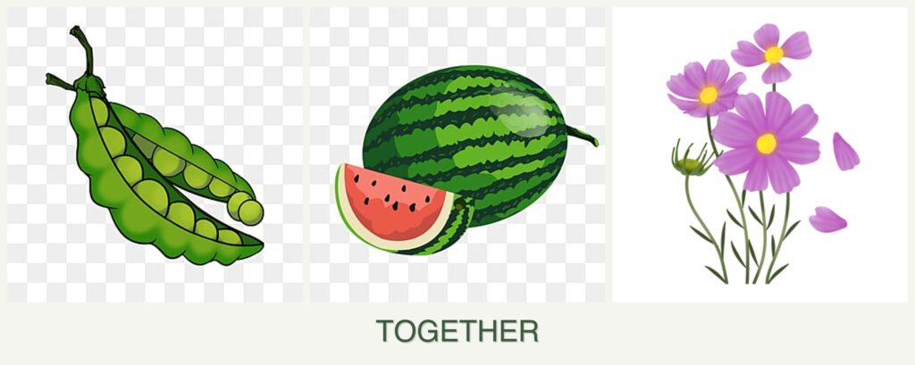 - Harvesting: Melons’ sprawling vines may complicate access to peas.