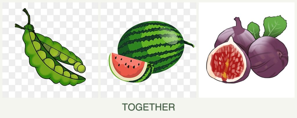 Nutrient Needs: Peas improve soil nitrogen, which benefits melons. Figs, being woody perennials, have different nutrient needs and do not compete directly with melons or peas.