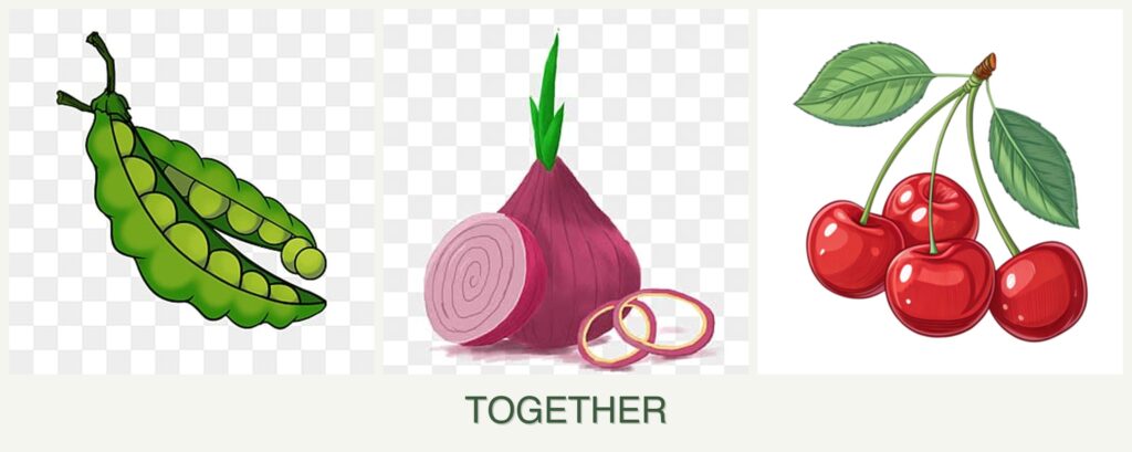 - Nutrient Needs: Peas fix nitrogen in the soil, benefiting onions. Cherries, being a tree, have deeper roots and different nutrient requirements.