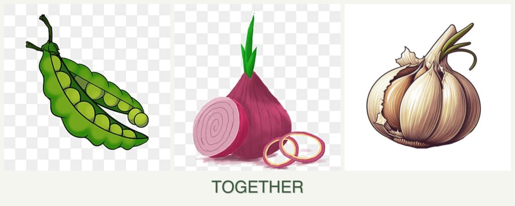 - Pest Control: Onions and garlic are known for their pest-repelling properties, which can protect peas from aphids and other insects.