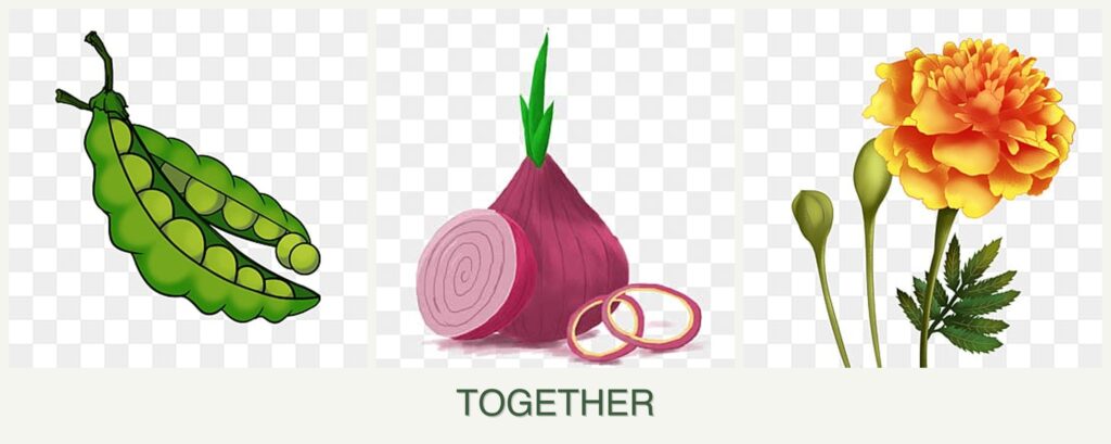 Planting peas, onions, and marigolds together offers several benefits: