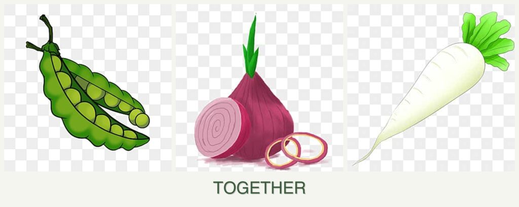 Growth Requirements: Peas, onions, and radishes have similar soil and sunlight needs, making them suitable partners. Peas are nitrogen-fixing plants, which can enrich the soil for onions and radishes.