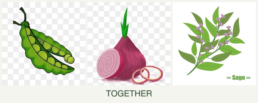 - Pest Control: Onions deter aphids and other pests that may affect peas, while sage can repel cabbage moths.