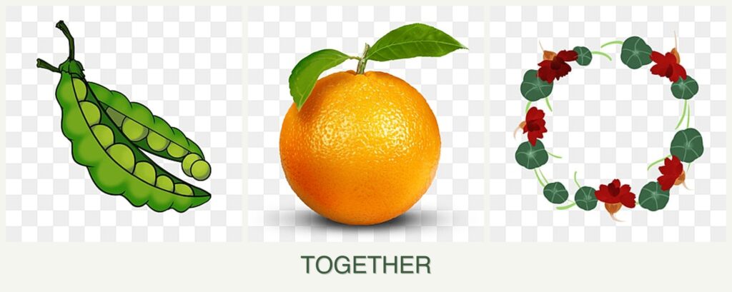 - Pest Control: Nasturtiums are known for their pest-repelling properties, which can help protect peas and oranges from aphids and other common garden pests.