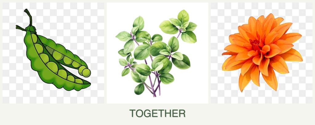 Planting peas, oregano, and dahlias together can offer several benefits: