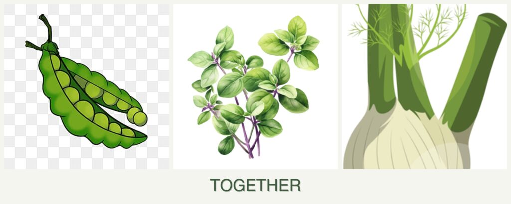While fennel is not recommended, planting peas and oregano together can offer several benefits: