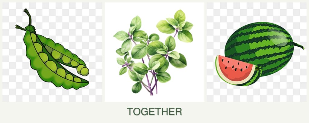 - Soil Preparation: Enrich soil with compost for melons and ensure good drainage for peas and oregano.